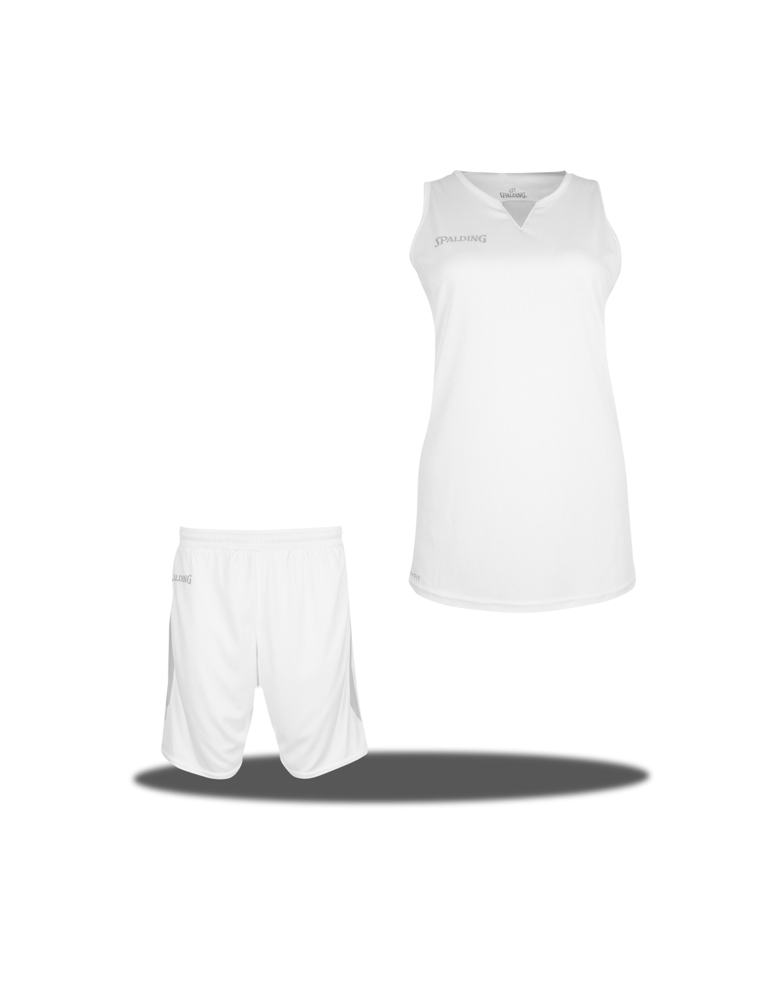 Equipación de baloncesto femenina compuesta por pantalón y camiseta. Marca Spalding. Modelo 4Her III.