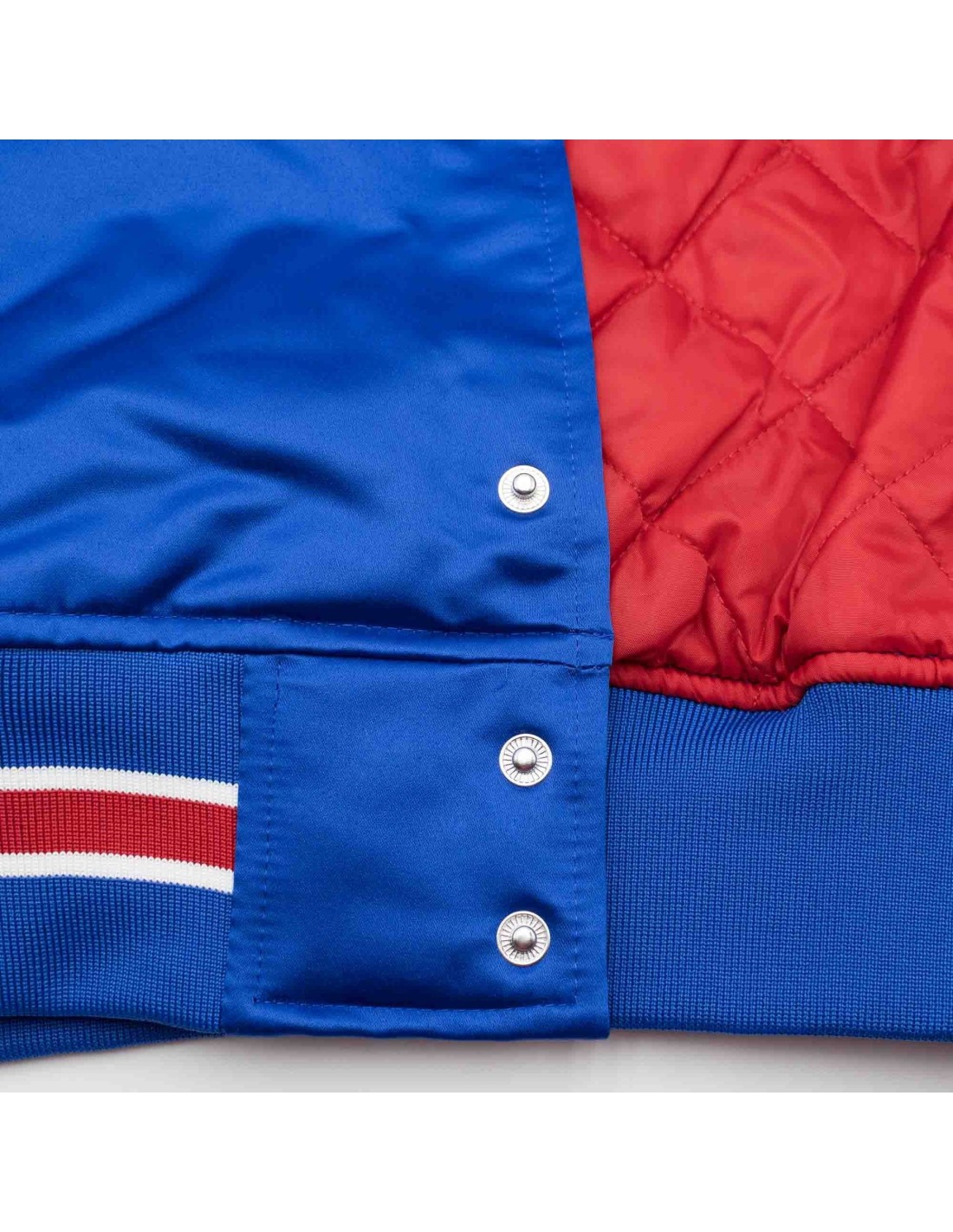 Confeccionada con satén de alta calidad, esta chaqueta está completamente forrada con tafetán de poliéster acolchado para brindar calidez y comodidad inmejorables. Con dos bolsillos delanteros, un bolsillo interior y cierre frontal completo, esta chaqueta tiene todo lo que necesitas para el día del partido o para el uso diario.
