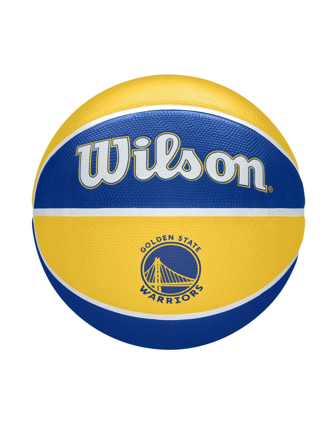Balón de baloncesto de la marca Wilson con el logo de los Golden State Warriors. Talla 7. Balón de goma adecuado para exteriores.